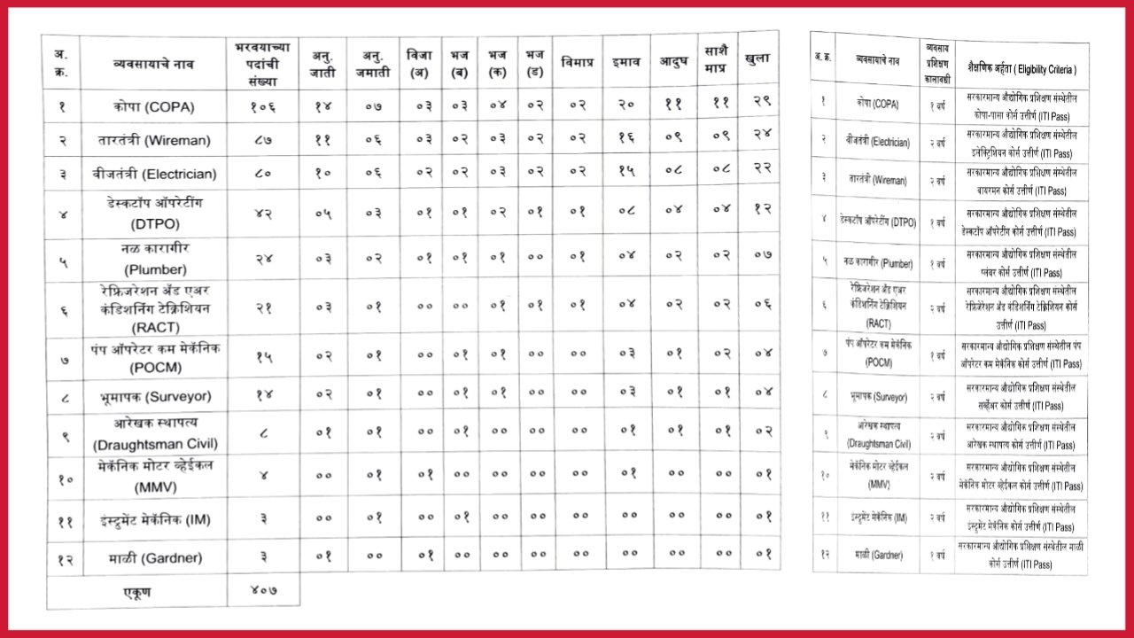 BPCL : भारत पेट्रोलियम अंतर्गत विविध पदांच्या एकुण 250 रिक्त जागेसाठी , पदभरती प्रक्रिया राबविण्यात येत असून , पात्र उमेदवारांकडून विहीत कालावधीमध्ये , ऑनलाईन पद्धतीने आवेदन मागविण्यात येत आहेत . ( bharat petroleum corporation ltd. Recruitment for various post , number of post vacancy – 250 ) रिक्त पदांचा सविस्तर तपशिल पुढीलप्रमाणे पाहुयात . अ.क्र … Read more