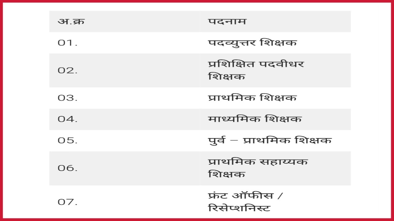 | 05. | पुर्व – प्राथमिक शिक्षक |