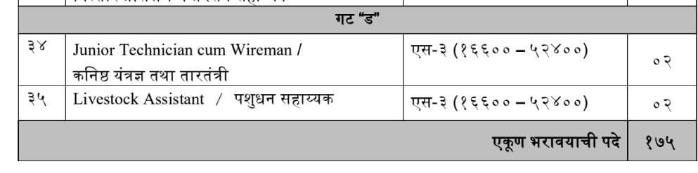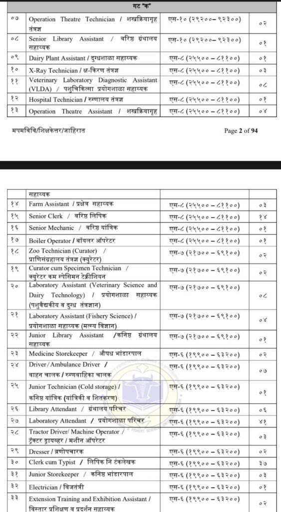 महाराष्ट्र व मत्स्य विज्ञान विद्यापीठ अंतर्गत विविध गट ब, क व ड संवर्गातील एकुण 175 रिक्त जागेसाठी सरळसेवा पदभरती !