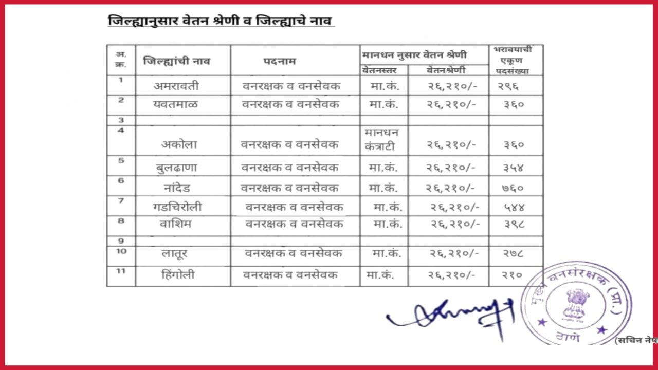 वनरक्षक व वनसेवक पदांची जिल्हानिहाय रिक्त पदांची संख्या खालीलप्रमाणे पाहु शकता ..