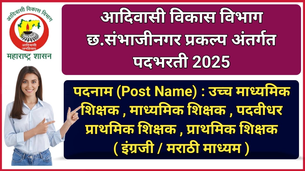 आदिवासी विकास विभाग छ.संभाजीनगर प्रकल्प अंतर्गत शिक्षक पदांसाठी पदभरती ; लगेच करा आवेदन .