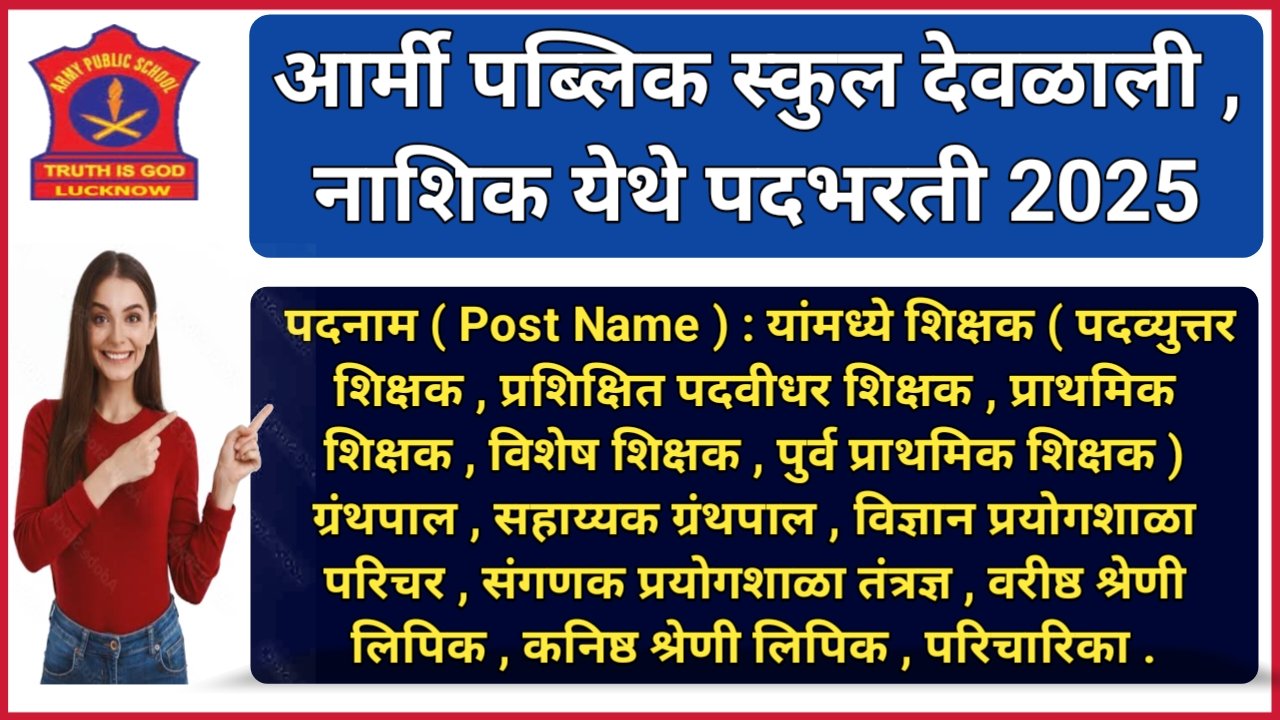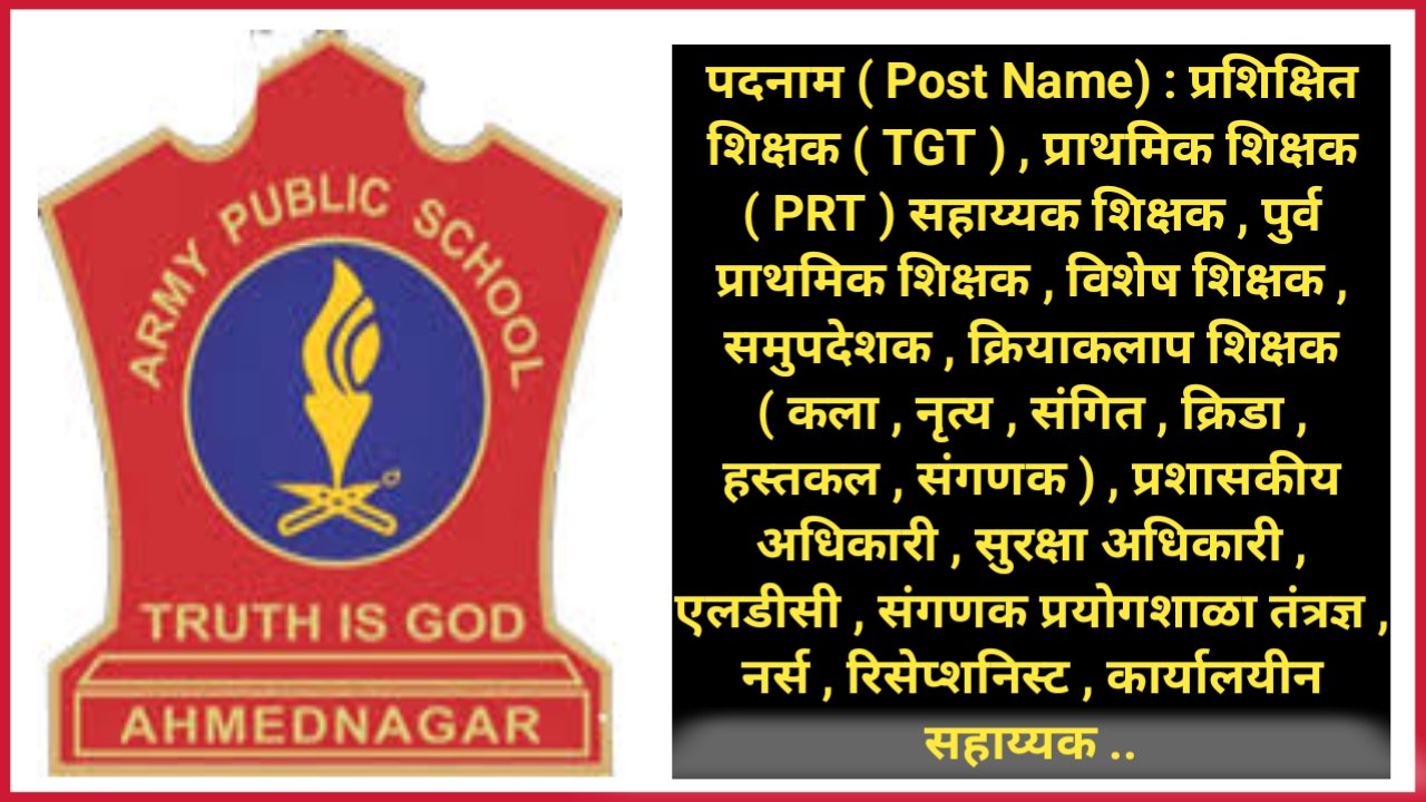 आर्मी पब्लिक स्कूल अहिल्यानगर अंतर्गत विविध पदांसाठी मोठी पदभरती , प्रक्रिया राबविण्यात येत असुन , सदर पदांकरीता आवश्यक अर्हता धारण करणाऱ्या उमेदवारांकडून विहीत कालावधीमध्ये ऑफलाईन पद्धतीने आवेदन मागविण्यात येत आहेत . ( Army Public School ahilyanagar recruitment for various post ) पदांचा सविस्तर तपशिल पुढीलप्रमाणे पाहुयात . पदनाम ( Post Name ) : यांमध्ये पदव्युत्तर … Read more