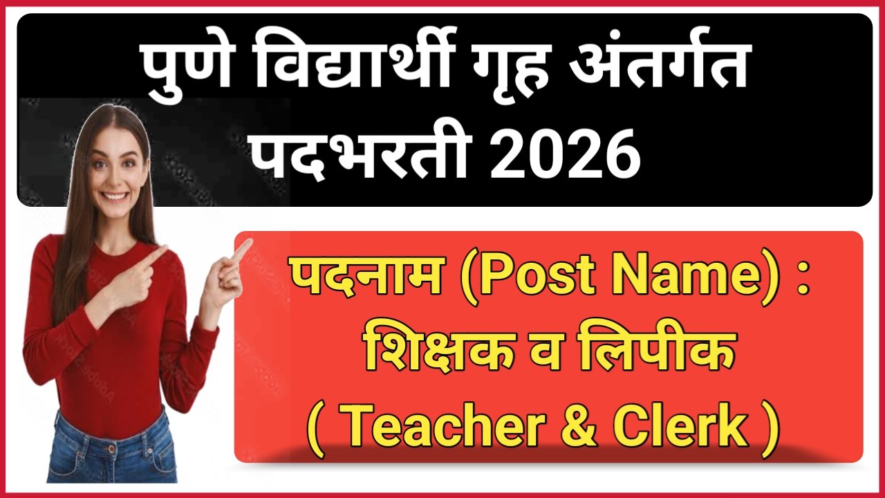 पुणे विद्यार्थी गृह अंतर्गत शिक्षक व लिपिक पदांच्या 31 रिक्त जागेसाठी पदभरती !