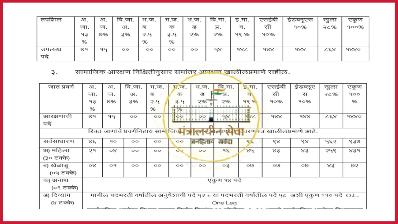 महाराष्ट्र शासन सेवेत विविध पदांच्या तब्बल 1489 जागांसाठी महाभरती प्रक्रिया !