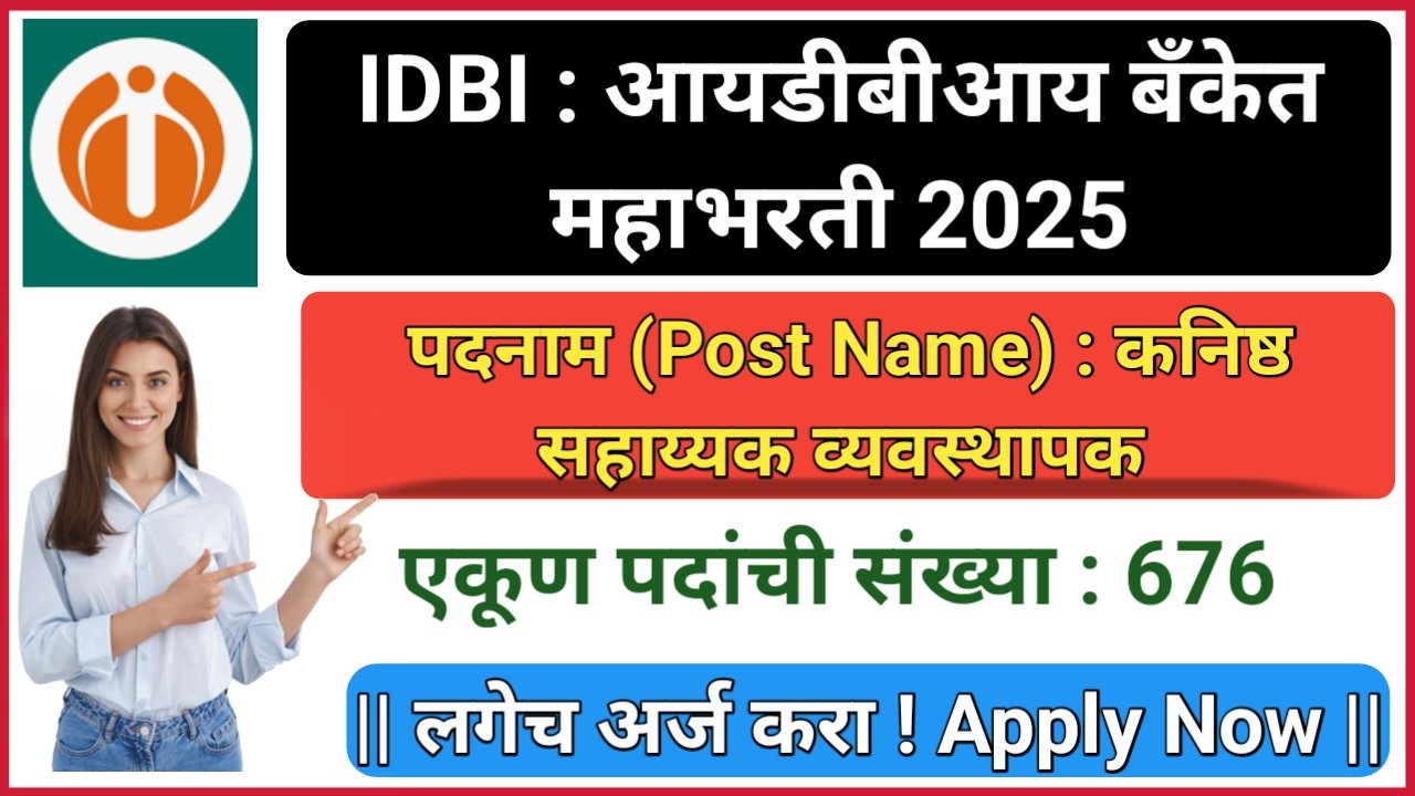 IDBI BANK : आयडीबीआय बँकेत तब्बल 1300 रिक्त जागेसाठी महाभरती ; Apply Now !