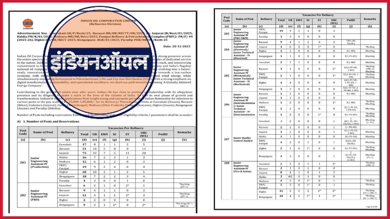 IOCL : इंडियन ऑइल कॉर्पोरेशन लि. अंतर्गत 394 रिक्त जागेसाठी नवीन महाभरती !