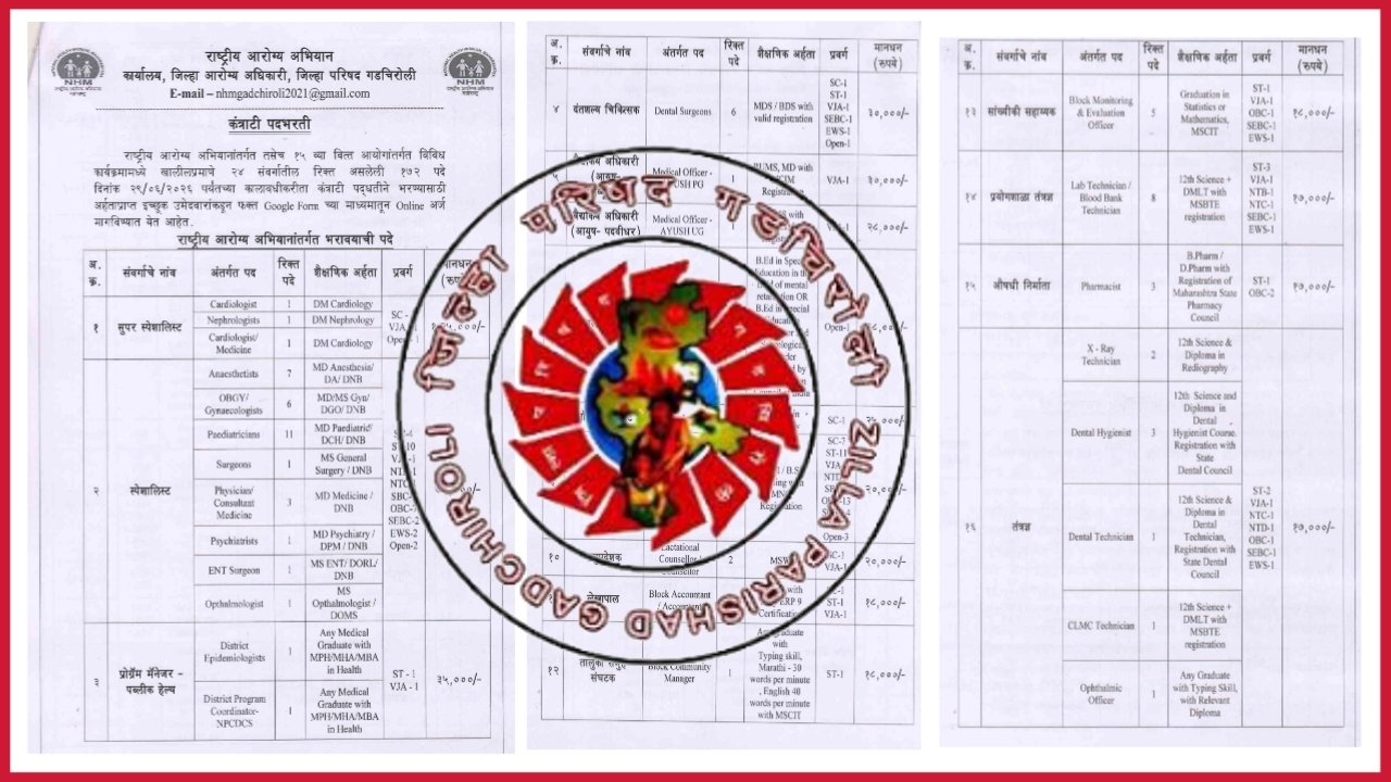 जिल्हा परिषद गडचिरोली अंतर्गत विविध पदांच्या तब्बल 172 रिक्त जागेसाठी महाभरती ; लगेच करा आवेदन .