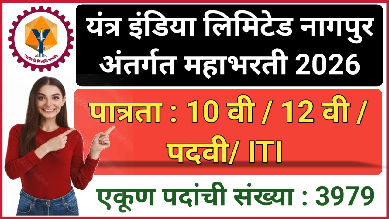 यंत्र इंडिया लिमिटेड नागपुर अंतर्गत तब्बल 3979 रिक्त जागेसाठी महाभरती ; लगेच करा आवेदन .