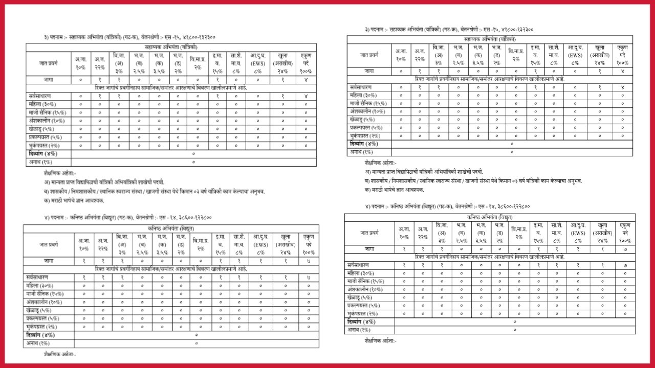 नाशिक पालिका प्रशासन अंतर्गत तब्बल 114 रिक्त जागेसाठी पदभरती , प्रक्रिया राबविण्यात येत असून , सदर पदांकरीता आवश्यक अर्हता धारण करणाऱ्या उमेदवारांकडून विहीत कालावधीमध्ये , ऑनलाईन पद्धतीने आवेदन मागविण्यात येत आहेत . ( Nashik Mahanagar palika recruitment for Engineer post , number of post vacancy – 114 ) रिक्त पदांचा सविस्तर तपशिल पुढीलप्रमाणे पाहुयात . … Read more
