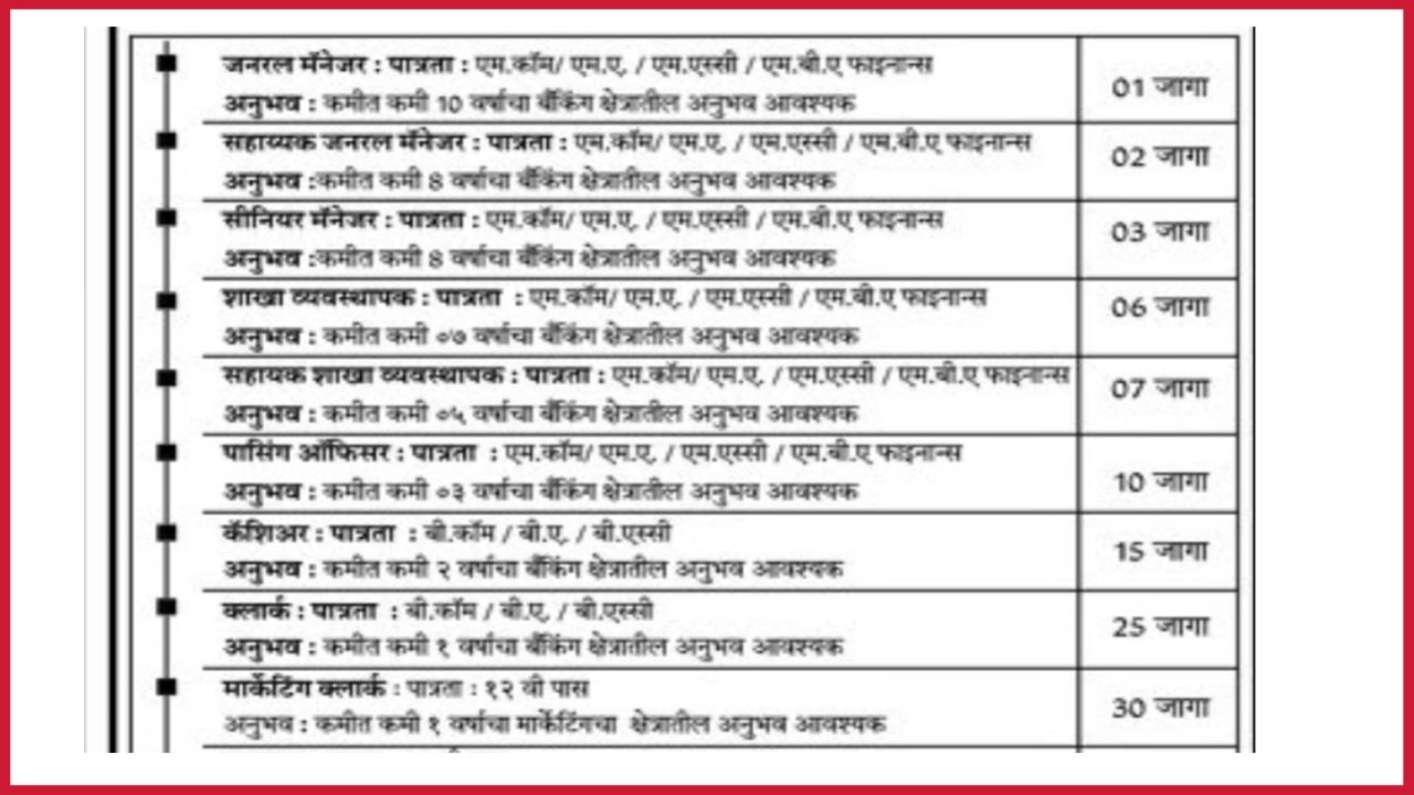 रेणुकामाता मल्टीस्टेट अंतर्गत व्यवस्थापक , लिपिक , कॅशिअर , चालक इ. पदांच्या तब्बल 104 जागेसाठी पदभरती , प्रक्रिया राबविण्यात येत असून , सदर पदांकरीता आवश्यक अर्हता धारण करणाऱ्या उमेदवारांकडून विहीत कालावधीमध्ये , ऑनलाईन पद्धतीने आवेदन मागविण्यात येत आहेत . ( Renukamata Multistate Society Bharati ) पदांचा सविस्तर तपशिल पुढीलप्रमाणे पाहुयात . अ.क्र पदनाम पदांची संख्या … Read more